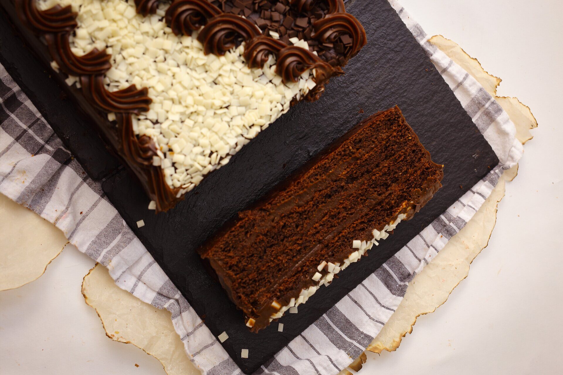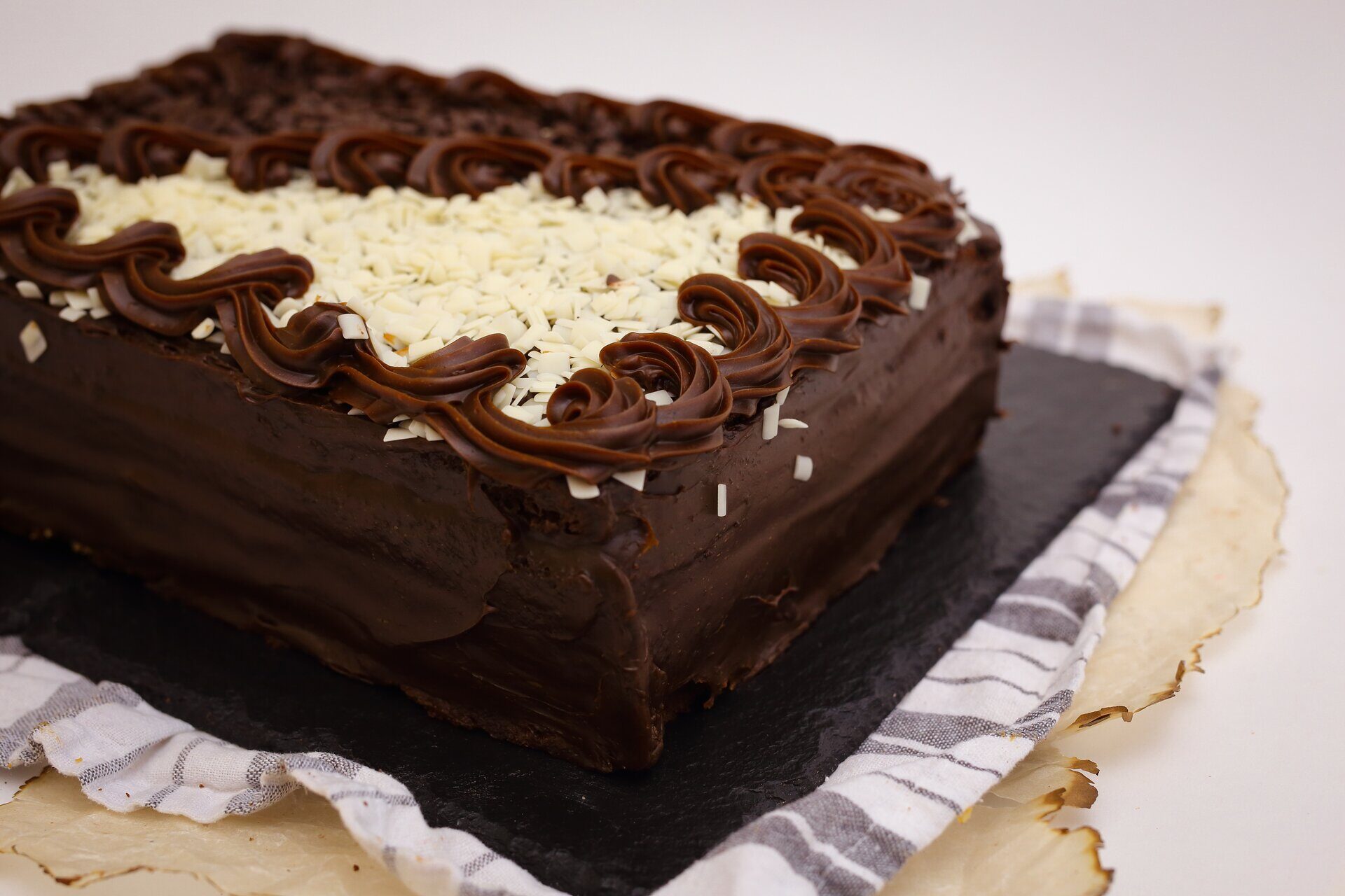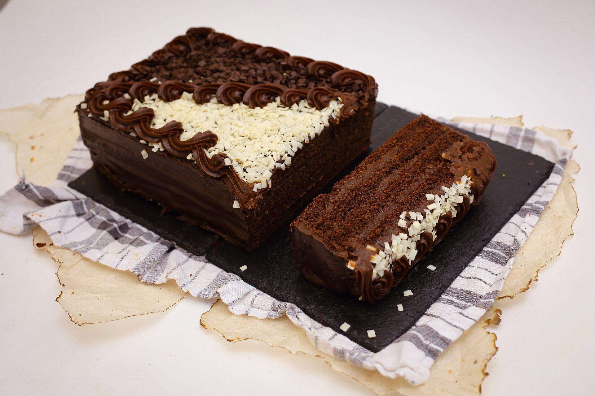 Торт Шоколадный имеет прямоугольную форму. Вес 1,5 кг или 3 кг